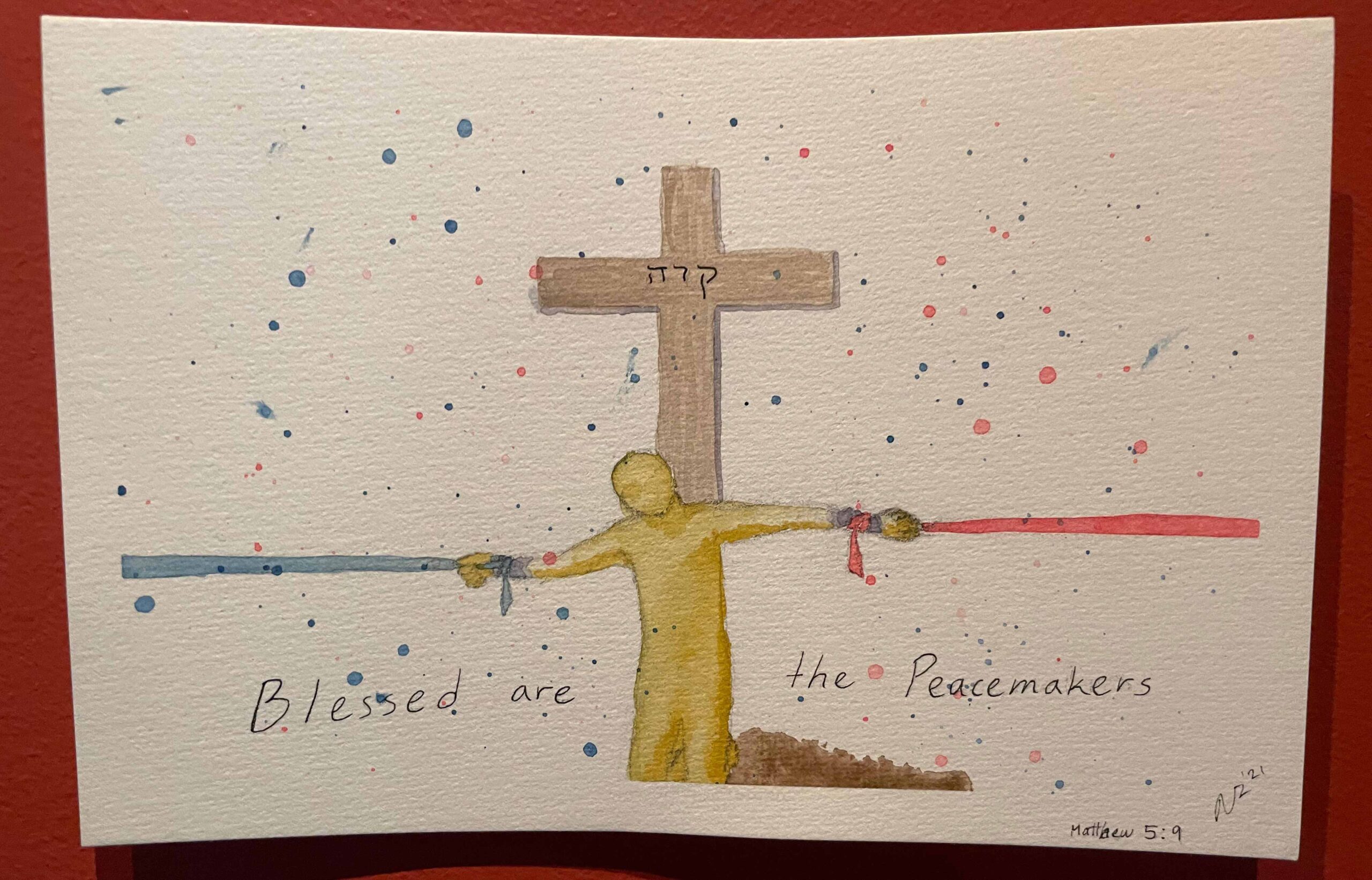 As artist Roy Mong commented, the diversity expressed within the “Liminality” show extended to the wide variety of media and art forms represented as well. Artists displayed works with acrylic paint, oil paint, oil pastels, gold leaf, watercolors, cardboard, wood, and various fabrics. Some of the pieces in the show had been created as final projects for the Winter 2024 course titled “Narrative, Identity & Asian American Experiences,” taught by Dr. Jermaine Ma.